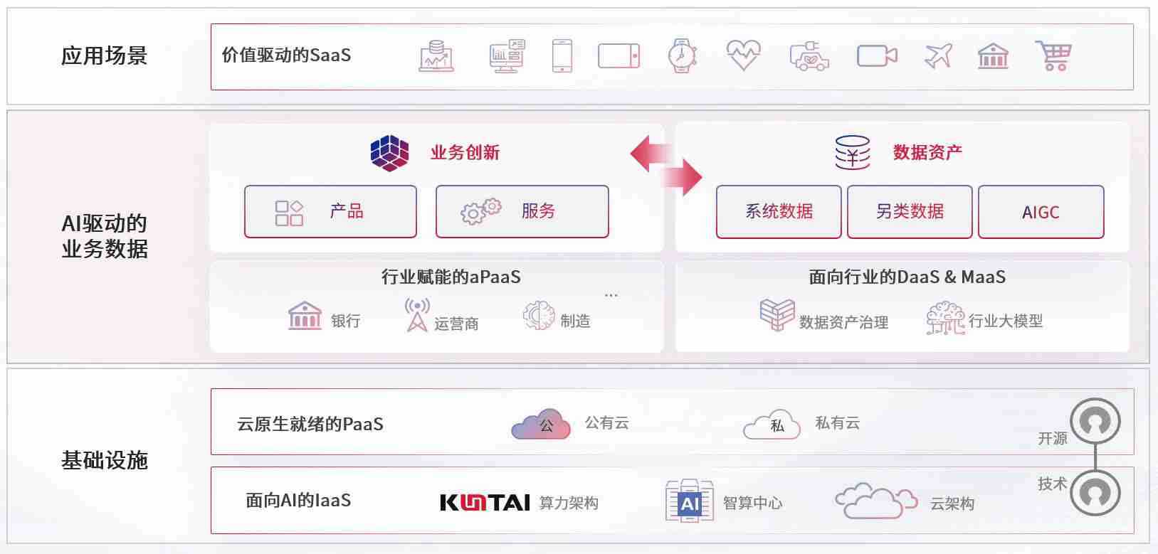 数字时代,,围绕企业数字化转型的关键要素,,,MANBETX数码开创性的提出数云融合战略和技术体系框架,,,,着力在云原生、、、数字原生、、、AI原生和信创产业上架构产品和服务能力,,,为处在不同数字化转型阶段的快消零售、、、汽车、、、、金融、、、、医疗、、、、政企、、、、教育、、运营商等行业客户提供泛在的敏捷IT能力和融合的数据驱动能力,,,构建跨界融合创新的数字业务场景和新业务模式,,助力企业级客户建立面向未来的核心能力和竞争优势,,全面推动社会的数字化、、智能化转型升级。。。。
