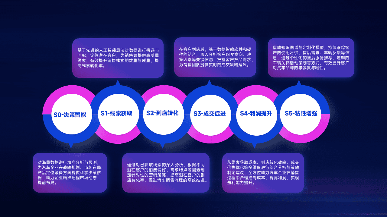 通过拓宽潜在客户来源、、优化线索分配并提高到店转化率,,,以增强销售效率。。。同时,,,利用线索数据不断优化分析模型,,,,有效提升转化率,,,扩大营销影响力。。。。